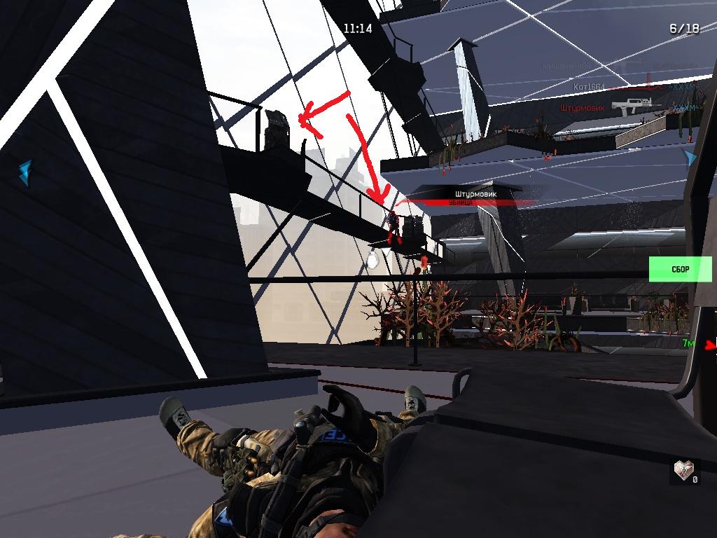 *На 7 этаже укрытий практически нет,  правая стена на картинке, клумба, огонь приходиться вести с положения лёжа и прятаться за что придётся, главное обеспечить себе укрытие с фланга