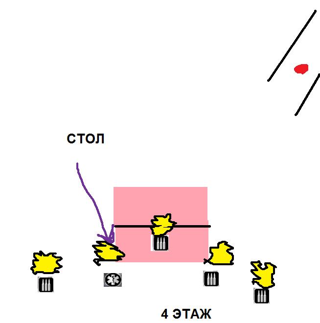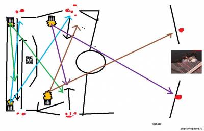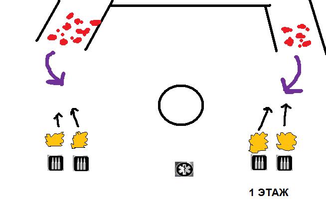 2 Вариант *Более надёжный, все бежим к правому(от лифта) углу и палим палим