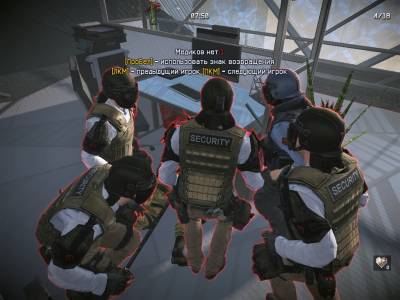 ***Если один и боле человек останется (под столом в центре) то напор противников в левом углу значительно ослабнет, не стоит забывать что в центре большую опасность представляют Щитоносцы и Бойцы Спецназа
